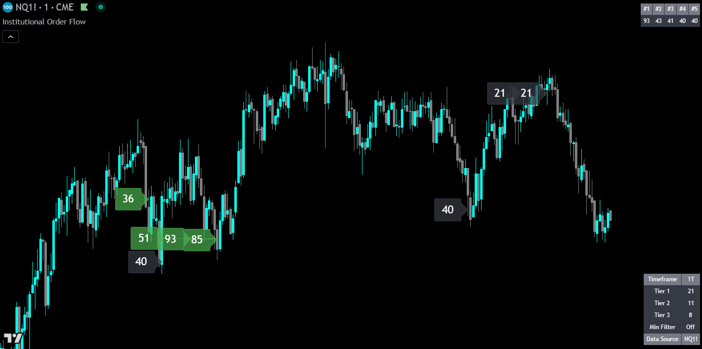 If you will be day trading with these indicators, we recommend having a Tradingview Premium or Ultimate plan for second and tick intervals. Tick data is necessary for figuring out directional order flow, but second intervals will work fine for some of the indicators that do not use directional data for calculations. Swing trading on higher timeframe charts will be fine with a lower tiered Tradingview plan that provides minute intervals.